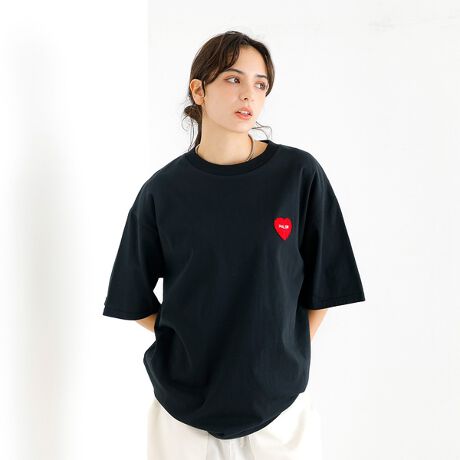人気のハート刺繍を胸に入れたTEE。ハートロゴのワンポイントはボディの胸元にあるだけでキュートなデザイン。