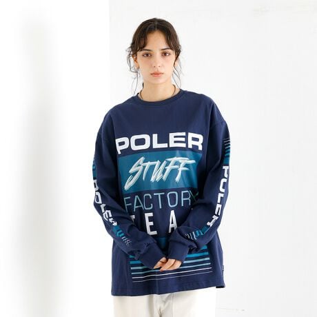 大人気アウトドアブランド【POLeR/ポーラー】からTEAMS STUFFロゴを前面と両袖に配置したプリントロゴTシャツ。