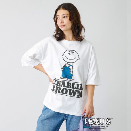 スヌーピー、チャリーブラウン、ウッドストック、ピーナッツ・ギャングをプリントした、シンプルな中にもアクセントのあるフロントデザインです。