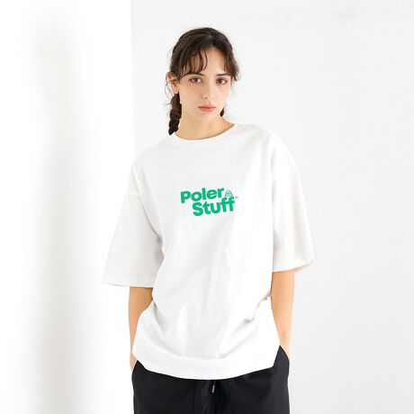 大人気アウトドアブランド【POLeR/ポーラー】からPOLeR STUFFロゴを絶妙なバランスで配置したフロントロゴTシャツ。