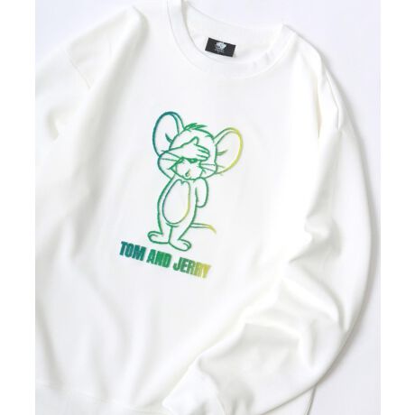 Tom and Jerry/トムとジェリー オーバーサイズ キャラクターワンポイント刺繍 サイドライン バックプリント スウェットトレーナー レディース メンズ