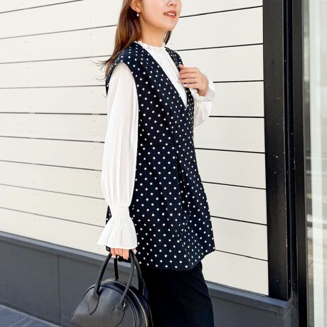 ・フォルムにメリハリを持たせたドットジャガードのペプラムジレ