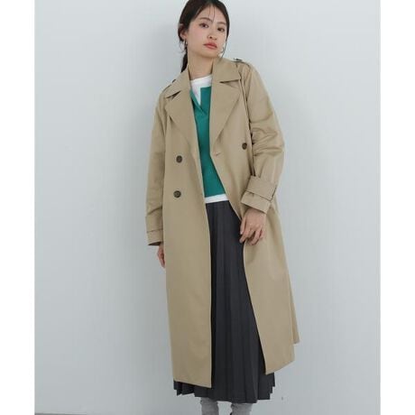 ボクシーなシルエットのトレンチコート。ゆったりとしたシルエットながらも、ルーズ感が強すぎないので、カジュアルにもきれいめなコーディネートにもお勧めです。襟やベルトのパーツを大きめにしているのが今年らしいポイント。肩にエポレットデザインを付けており、クラシカルな印象に。ウエストベルトをしっかり締めるときちんと見えし、よりキレイめに着用いただけます。<素材>ややツヤ感のある細番手のツイル素材で、N.オリジナル生地とカラーを使用しています。ややハリ感のある合繊素材なので、カジュアルすぎないキレイ目な雰囲気の出る素材です。N.オリジナルで染めた、コーディネートに取り入れやすいベージュとライトベージュの2色を揃えています。<詳細>仕様・前ボタン裏地・なし透け感・なし / 光沢・ややあり / 伸縮性・なし 生地の厚さ・普通※モデルの着用画像の場合、光の当たり具合により、実際の色味と異なって見えることがございます。色味は、商品単体の画像をご参照ください。
