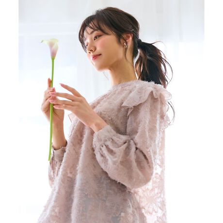 立体感があり、全面に施されたジャガードが華やかなブラウス。