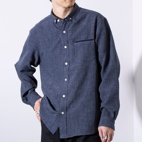 リネンライクなポリエステル糸を使用したシャツ地を採用。