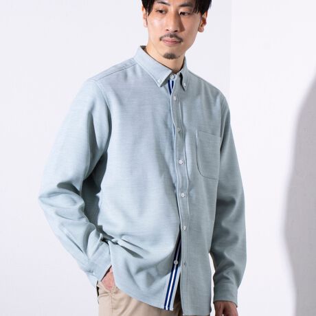 鹿の子織りのボタンダウンシャツでジャケットやカーディガンなど羽織アイテムとの相性抜群!