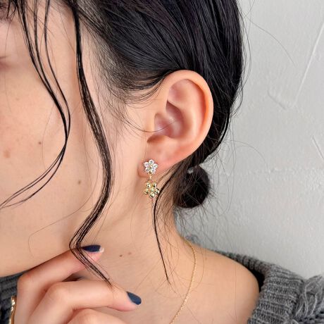 ・キラキラと煌めくフラワーモチーフが上品で歩くたびに揺れて大人可愛い印象に!