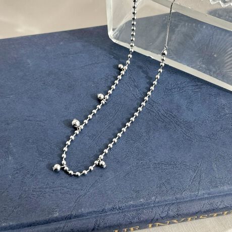 ・シンプルなボールチェーンネックレスに所々にメタルボールがプラスされたデザイン