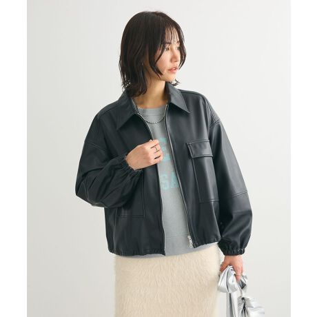 様々なMIXスタイルに重宝するフェイクレザージャケット。襟付きフロントファスナー仕様で楽に着脱出来、ソフトタッチの優しい質感も嬉しいポイントです。ゆったりワイドなフォルムにワークなアウトポケットをプラス。裾ドロストやシャーリングの袖口も旬テイストなアクセントです。オーバーサイズのニットも合わせられるロングシーズン活躍のおすすめアイテムです。透け感[なし]