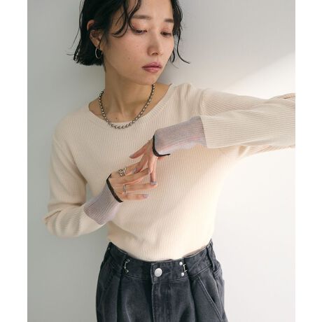 袖口のラメシアー切り替えがポイントのニットプルオーバー。ソフトフィットなストレートシルエットにリブの縦ラインがスマートに見せてくれます。アンチピリング素材で毛玉になりにくく、お手入れしやすいのも嬉しいポイント。すっきりとしたラウンドネックのシンプルなデザインで幅広いコーディネートに合わせていただけます。透け感[ややあり]