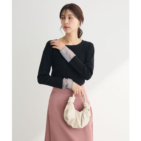 袖口のラメシアー切り替えがポイントのニットプルオーバー。ソフトフィットなストレートシルエットにリブの縦ラインがスマートに見せてくれます。アンチピリング素材で毛玉になりにくく、お手入れしやすいのも嬉しいポイント。すっきりとしたラウンドネックのシンプルなデザインで幅広いコーディネートに合わせていただけます。透け感[ややあり]