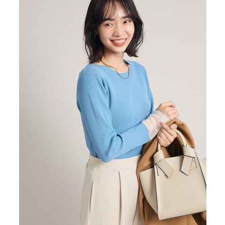 袖口のラメシアー切り替えがポイントのニットプルオーバー。ソフトフィットなストレートシルエットにリブの縦ラインがスマートに見せてくれます。アンチピリング素材で毛玉になりにくく、お手入れしやすいのも嬉しいポイント。すっきりとしたラウンドネックのシンプルなデザインで幅広いコーディネートに合わせていただけます。透け感[ややあり]