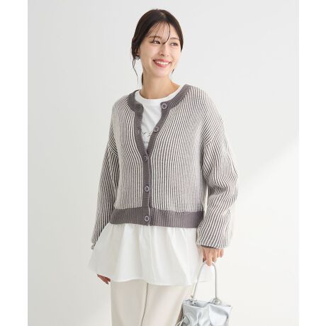 カーディガンとシャツをドッキングしたレイヤード風チュニック。伸び良い配色リブニットが目を惹く爽やかなデザインです。ふんわりと広がるシャツのシルエットがフェミニンなアクセントポイント。1枚取り入れるだけでトレンドライクなスタイリングが楽しめるおすすめなアイテムです。透け感[なし]