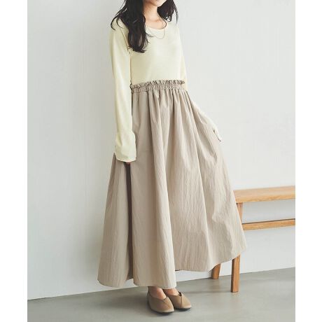 ふんわりと程よいボリューム感のスカートは、ハリ感のあるタフタ生地を採用し、纏うだけで洗練された印象に。