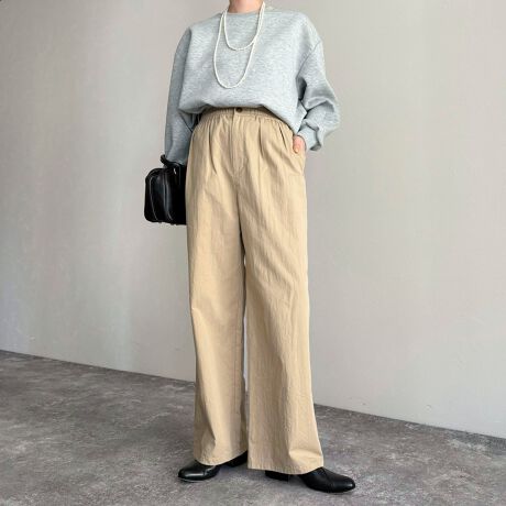 ・綿ナイロンのサラッとした生地感のイージーストレートパンツ