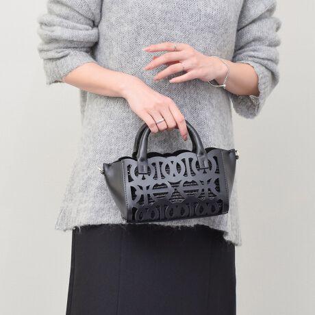 レーザーカットの抜け感が春夏らしいハンドバッグは、洗練された大人の雰囲気に仕上がっています。