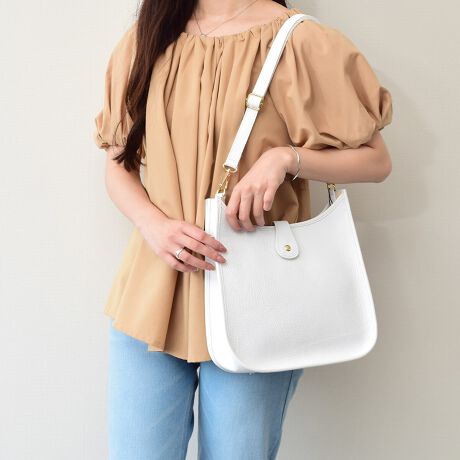 ポーチ付きのシンプルなショルダーバッグは、飽きのこないデザインなので、長くお使い頂けます。