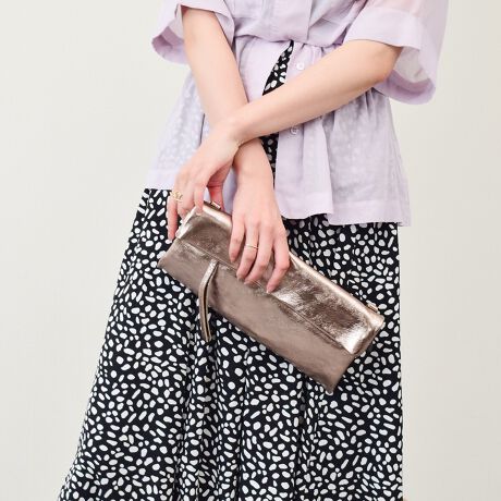 シンプルなデザインのレザーワイドサコッシュは、素材感が春夏らしいバッグです。