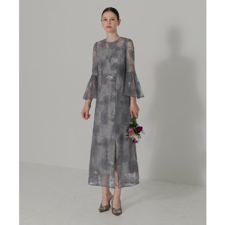 シックなカラー×ふわっと広がる花びらのデザインが優雅で上品さ溢れるロングドレス