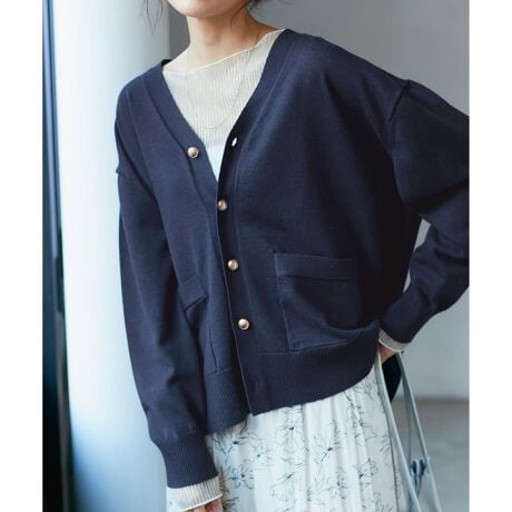 ・シルク混の肌触りの良い編み地のVネックカーディガン。