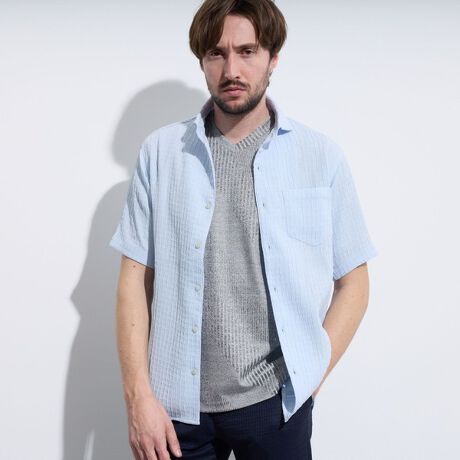 ブリスターチェックジャガード半袖シャツ