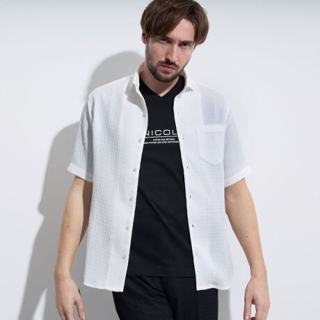 ブリスターチェックジャガード半袖シャツ