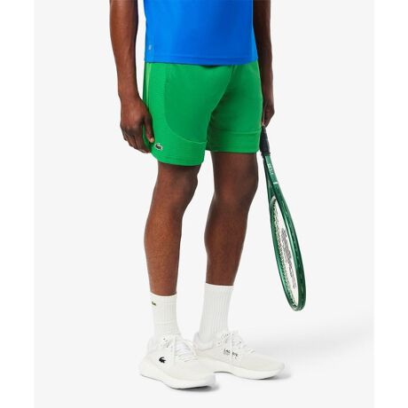 [型番:GH8950-99]トッププロのパフォーマンスにも対応するテニスショーツ・リサイクルポリエステル仕立てのウルトラドライストレッチジャージ素材・サイドから裾口にかけて立体メッシュパネルで切り替え・ウエストバンドはメッシュ仕立て・ダニール・メドベージェフをはじめとするラコステ契約選手も着用