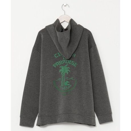 ストレッチ性のあるダンボールニットのフード付きメンズトップス。胸元、袖口、背中の3ヶ所にハワイを感じるデザインのプリントがされています。発泡プリント&フロッキープリントがコーデのアクセントに。
