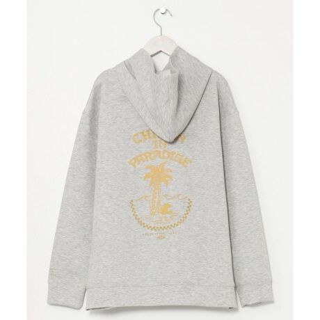 ストレッチ性のあるダンボールニットのフード付きメンズトップス。胸元、袖口、背中の3ヶ所にハワイを感じるデザインのプリントがされています。発泡プリント&フロッキープリントがコーデのアクセントに。