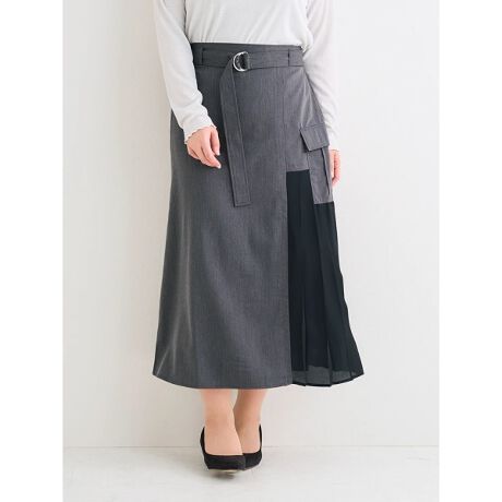 サイドを異素材プリーツで切り替えたモードな雰囲気漂うスカート