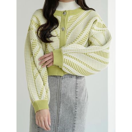 ポイントになるジャガード柄×短丈デザインがトレンド感をプラスするカーディガン