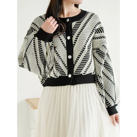 ポイントになるジャガード柄×短丈デザインがトレンド感をプラスするカーディガン