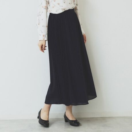 サラサラでふんわりとはき心地がいいです。サイドのプリーツが可愛く、ネイビーなので何にでも合わせられます。