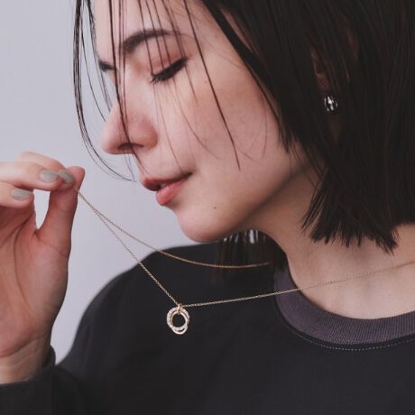 洗練されたダブルリングが特徴のビジューネックレス。