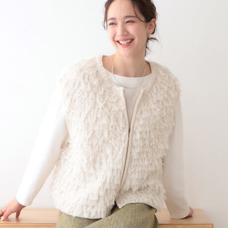 前を開けて羽織るだけでなく閉じてベスト風な着こなしや、ダブルジップを上下開けたきこなしもこなれ見えします。