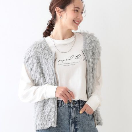 前を開けて羽織るだけでなく閉じてベスト風な着こなしや、ダブルジップを上下開けたきこなしもこなれ見えします。