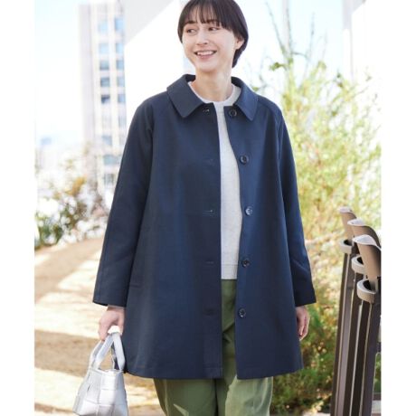 ロングタイトスカートを合わせる際は、前を開けるとバランスよく着こなしていただけます。