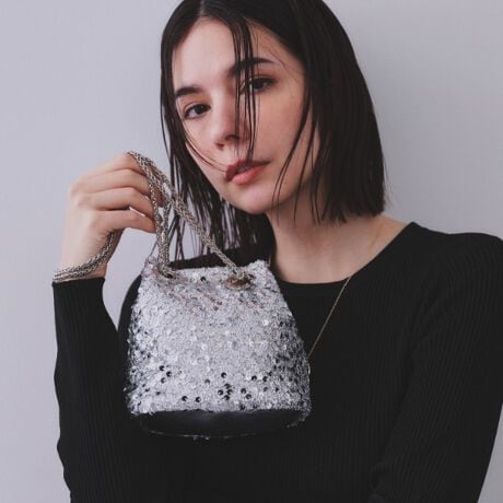 巾着型のデザインはコロンとしたシルエットがキャッチーで、カジュアルスタイリングにもパーティーシーンにも合わせていただける華やぎのあるデザインです。
