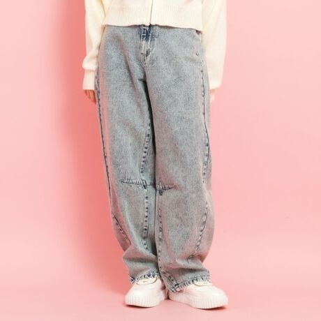 膝にかけて緩やかなカーブを描いたデザインで、裾が絞りすぎないリラックス感が魅力のワイドデニム。