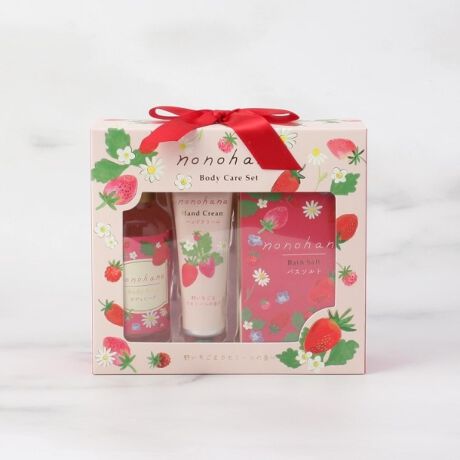 バスソルト、ボディソープとハンドクリーム、スポンジを詰め合わせたボディケアセット。