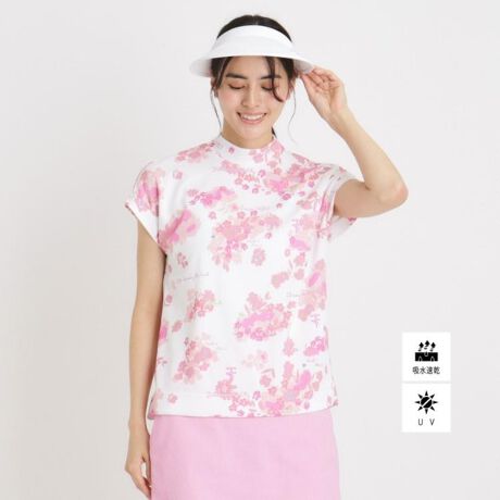 毎年人気のフラワーリンクス柄が魅力的な、女性らしさ際立つフレンチスリーブの半袖プルオーバー。