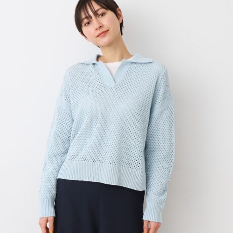 春先から夏まで、合わせるインナーの素材や袖丈を変えながら長く着まわせるトレンドのメッシュニット。