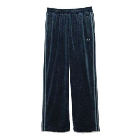 程良く光沢のあるベロア素材が華やかな印象を与えるパンツ。サイドに配色ラインを飾ってスポーティーにデザインしました。小さめにあしらったブランドロゴにもご注目。