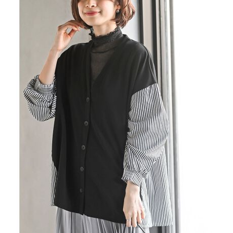 無地とストライプを切り替えた存在感のあるカーディガン。