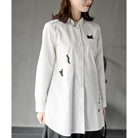 カワイイ猫ちゃん刺繍のシャツブラウス