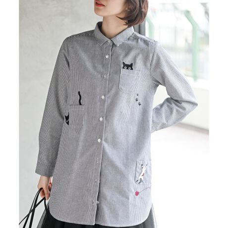 カワイイ猫ちゃん刺繍のシャツブラウス