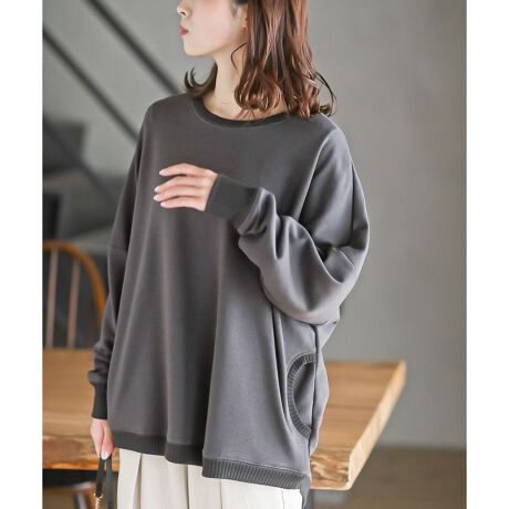 襟や袖口、裾をリブで切り替えたスウェットトップス。
