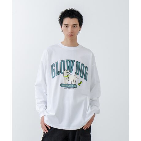 アイコンの犬モチーフロゴが特徴的な「GLOW DOG」のCVC天竺長袖Teeです。