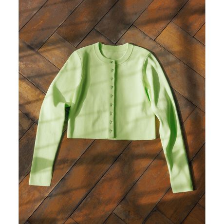 コンパクトなシルエットでどんなボトムにも合わせやすく、プルオーバーとしても着用可能なロングスリーブカーディガン。