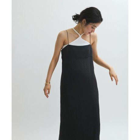 ストンとしたミニマルなシルエットに、裾のミニフリルでアクセントをつけたキャミワンピース。